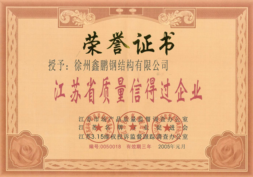 江苏鑫鹏重质量守信用证书